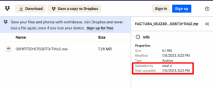 | URL | https://www.dropbox[.]com/s/dl/crngmedctxvbqmr/FACTURA_00J23RT50167S56T0rTI4i2.zip |