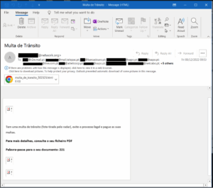 La efectividad de este tipo de correo phishing se debe a que adjunto al HTML se encuentran evidencias de la supuesta infracción. De manera que lo que se observa es el uso de correos phishing aprovechando tácticas de intimidación, lo que a su vez incentivara a la víctima a dirigirse al HTML adjunto. Este HTML contiene código basura y datos en formato HEX.