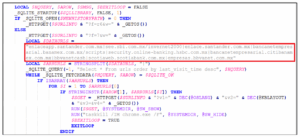 Entre otras de las funciones incorporadas en el malware también se puede observar, la extracción de información de Chrome como las contraseñas almacenadas, esta acción es llevada a cabo mediante la función “_CHROMERECOVERY()” mediante la descarga del archivo “sqlite3.dll”.