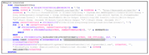 El primer blob de datos en base 64 es un script compilado AutoIt y el segundo es un intérprete AutoIt, el cual es utilizado para ejecutar el primer archivo. El propósito principal del script AutoIt es la enumeración del host y la descarga de un archivo .VBS el cual posteriormente se ejecuta a través de “SHELLEXECUTE”. Seguidamente invoca funciones de “_OUTRECOVERY()” con la finalidad de extraer datos del servidor de Outlook como usuarios, contraseñas de registro POP3, SMTP e IMAP.