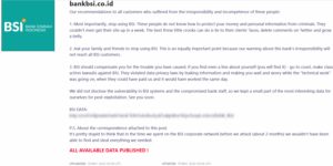 El grupo de ransomware atacó a BSI el 8 de mayo del 2023, quienes como resultado pararon todas sus operaciones. Estos hacían saber a través de un comunicado que, “El gerente del banco no pudo pensar en algo mejor que mentir descaradamente a sus clientes y colaboradores haciéndoles creer que el banco estaba atravesando una serie de trabajos técnicos”.