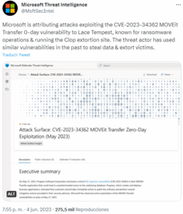 Los ataques hacia MOVEit han sido atribuidos, según Microsoft, a el grupo Lace Tempest, conocido por sus operaciones de ransomware y por dirigir el sitio de extorsión Clop.