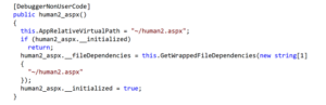 La primera vez que se “renderiza” un archivo ASPX, .NET lo precompila y almacena en caché los resultados en estos archivos temporales. Estos son artefactos sobrantes de csc.exe preparando el archivo human2.aspx recién añadido.