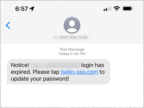 Más específicamente, los empleados actuales y anteriores informaron recientemente que recibieron mensajes de texto que pretendían ser del departamento de TI. Los cuerpos de texto típicos sugerían que las contraseñas de los empleados habían caducado o que su horario había cambiado y que necesitaban iniciar sesión en una URL que controla el atacante. Las URL usaban palabras como “Twilio”, “Okta” y “SSO” para tratar de engañar a los usuarios para que hicieran clic en un enlace que los llevaba a una página de destino que se hacía pasar por la página de inicio de sesión de Twilio. Los mensajes de texto se originaron en las redes de operadores estadounidenses. Además, los actores de amenazas parecían tener habilidades sofisticadas para hacer coincidir los nombres de los empleados de las fuentes con sus números de teléfono.