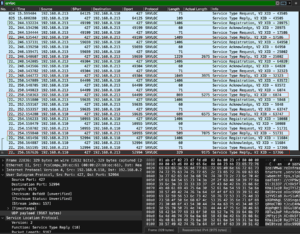 The configuration phase of the attack only must occur once to fill the server’s response buffer. The attacker can manipulate both the content and the size of the server response by registering new arbitrary services. During the attack, as shown in the image above, the interaction between the attacker (in green) and the server (in red) would look like a loop of registering services until the server buffer is full, followed by arbitrary fake requests.
